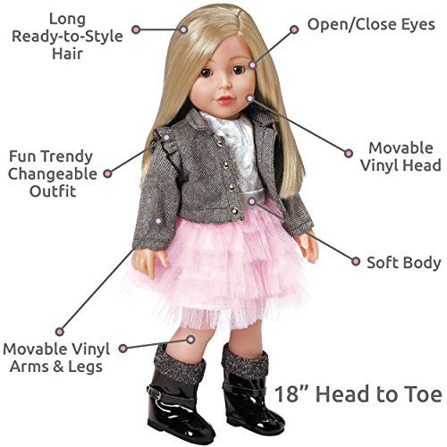 An Amazon exclusive! Discover the Amazing Girls play doll toys and join the fun! They’re a group of truly sweet and amazing girls who love style and adventure, but mostly they love being best friends forever. Harper is a girly-girl with a winning smile who loves tutus and horses! She even dreams of owning her very own horse one day. This Amazing Girl doll stands 18” tall and is the perfect size for dressing and styling. With her sweet brown eyes that open and close and long blonde hair, your little one is sure to become best friends with Harper, too! Outfit includes a pretty tutu dress, jacket, and shiny boots. Ages 6+