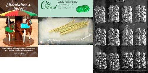 Cybrtrayd Pilgrims Thanksgiving Chocolate Mold with Chocolatier's Bundle, Includes 25 Cello Bags, 25 Gold Twist Ties and Chocolatier's Guide