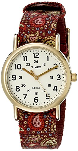 -. Title : Timex Women's TW2P741009J Weekender Collection Gold-Tone Stainless Steel Watch with Paisley-P.R.Inted Band