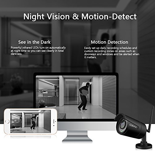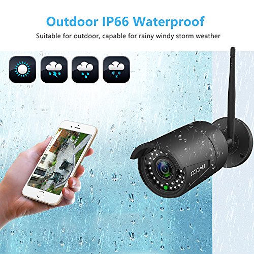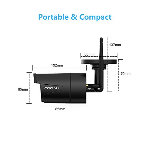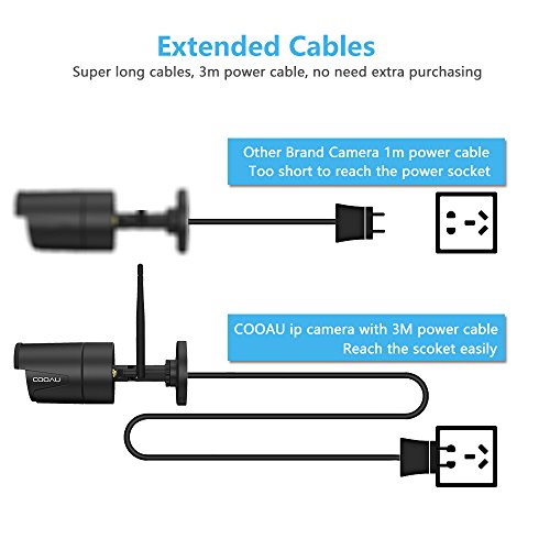 COOAU Wireless Home Security Camera CCTV 720P Wi-Fi Surviellance IP Camera Waterproof , Remote Monitor Control via Mobile Device, Motion Detect Alarm 10M Night Vision Recording Black, 3M Power Cable