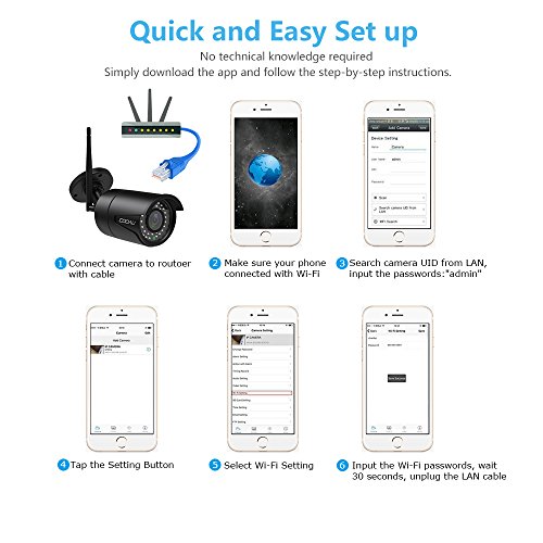 Easily Configuration: This is a plug and play camera. The installation is really easy to understand, download the “CAMHI” app to your iOS/Android smart-phone, scan the QR code on the camera. Important tricks before connection: IP/Network-2.4GHz Wireless (Incompatible with 5GHz). If your router supports both band, please close the 5GHz whiling connection.