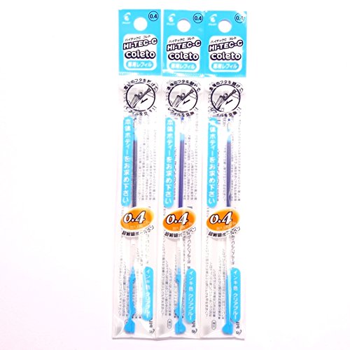 -. Title : Pilot Hi-Tec-C Coleto Gel Ink Pen Refill 0.4mm, Clear Blue, × 3 Packs/total 3 pcs (Japan Import) [Komainu-Dou Original Package]