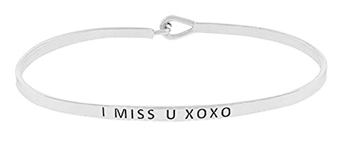 -. Feature : Bracelet measures 2.5" in diameter and .2" tall / Bracelet is engraved with "I MISS U XOXO" / Secure hook clasp - Comes packaged ready for gift giving / Great gift idea for mother, daughter, wife, girlfriend, best friend, significant other, sister / Suitable gift for birthday, graduation, Christmas, Easter, Valentine's Day, Mother's Day, graduation, parties, weddings and all other occasions
