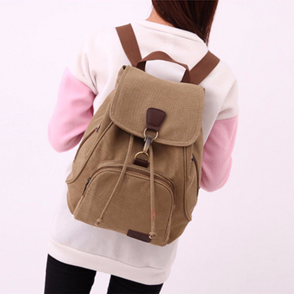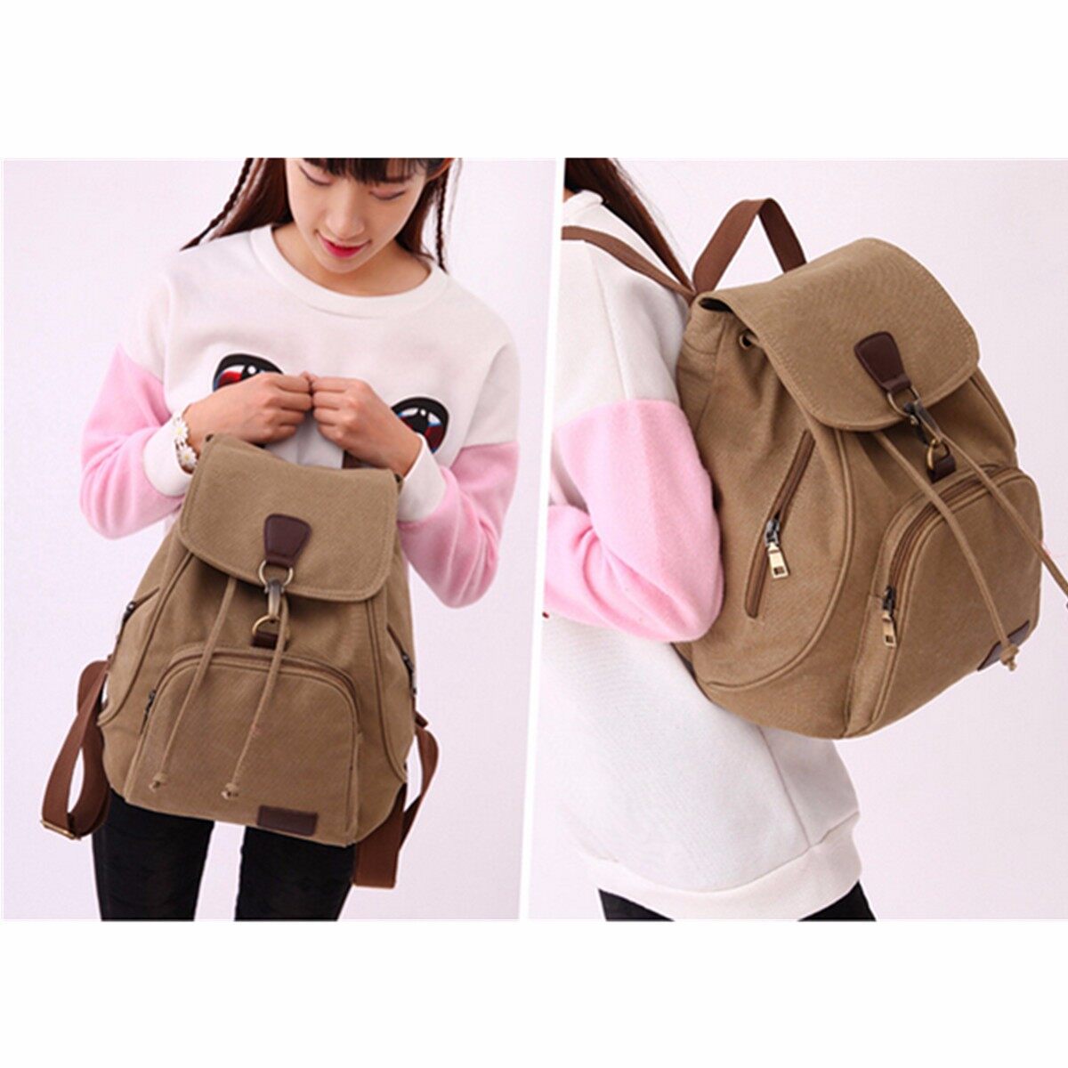 Product details of Women Men Canvas Travel Satchel Shoulder Bag Backpack School Rucksack Outdoor Khaki