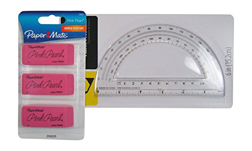5 - College Ruled Spiral Notebooks; 3 Paper Mate Pink Pearl Erasers; 2 Yellow Sharpie Highlighters; 4 Bic Mechanical Pencils; Protractor and Texas Instruments TI-30X IIS Scientific CalculatorFeature