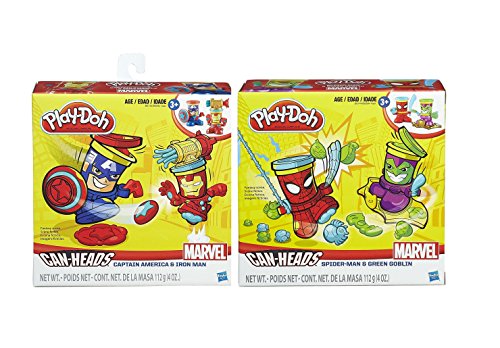 Take the lid off your imagination and create your own smash 'n bash adventures with Can-Heads heroes! Now iconic Play-Doh cans are part of the action as you re-create your favorite Marvel Super-Hero battles. Imagine your own can-to-can combat as Iron Man and Captain America team up with their stamper bases, rolling cutter with removable shield, and Repulsor extruder! Copyright Marvel. Hasbro and all related terms are trademarks of Hasbro.Feature