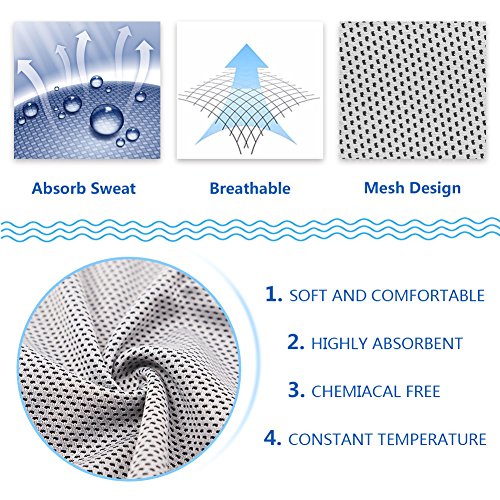 - HIGH QUALITY -- This cooling towel is light weight and there are no chemicals or harmful ingredient in it. It was adopted mesh design which makes it to be breathable, and dry quickly after you use it.