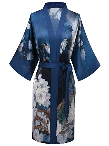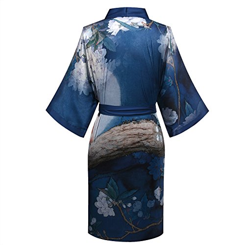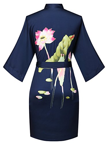 ExpressBuyNow Short Kimono Robes for Women - Watercolor Floral Navy 2