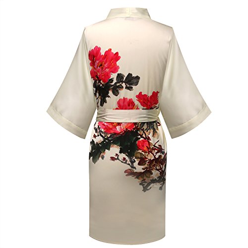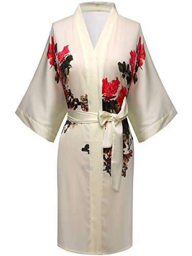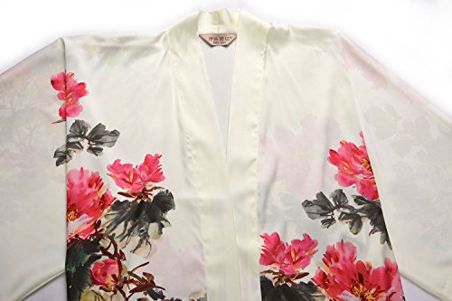 ExpressBuyNow Women's Print Kimono Short Robe - Watercolor Floral beige ,free size