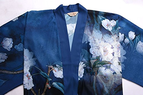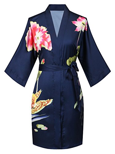 ExpressBuyNow Women's Print Kimono Short Robe - Watercolor Floral ,Navy ,free size