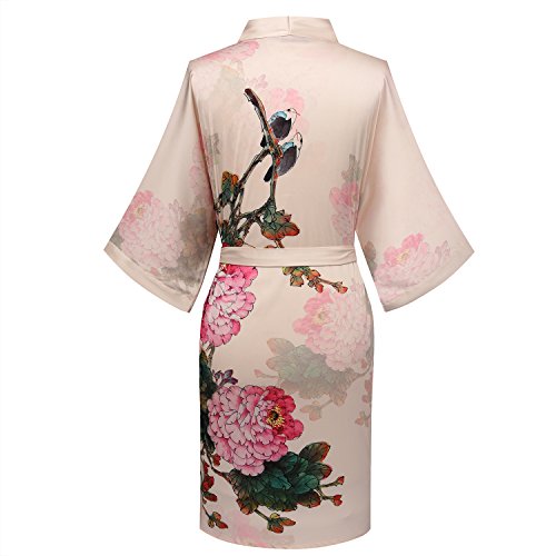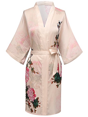 ExpressBuyNow Women's Print Kimono Short Robe - Watercolor Floral Apricot ,free size