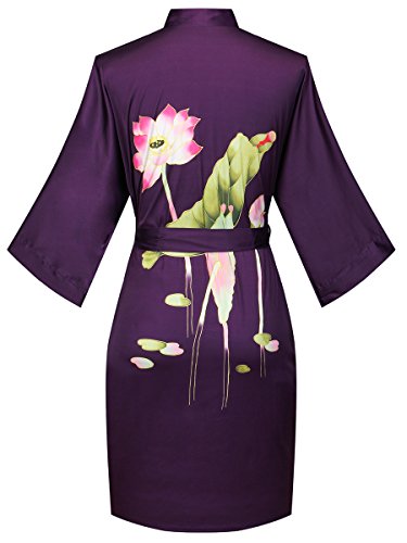 ExpressBuyNow Short Kimono Robes for Women - Watercolor Floral Purple