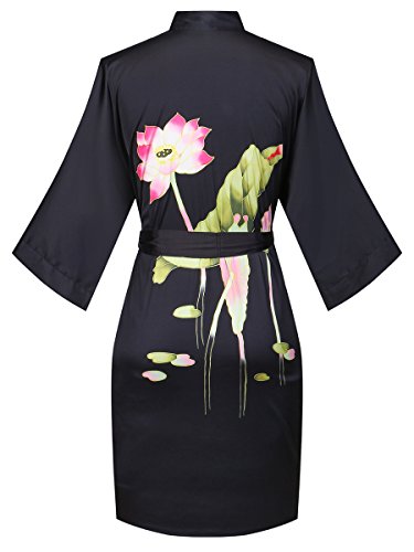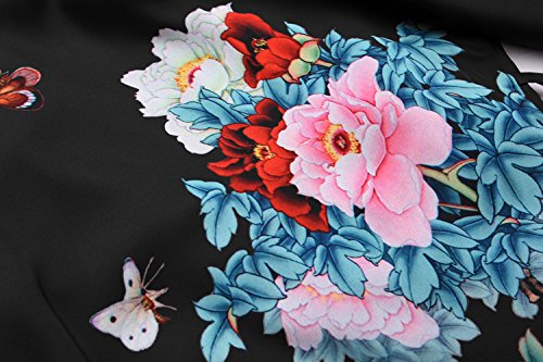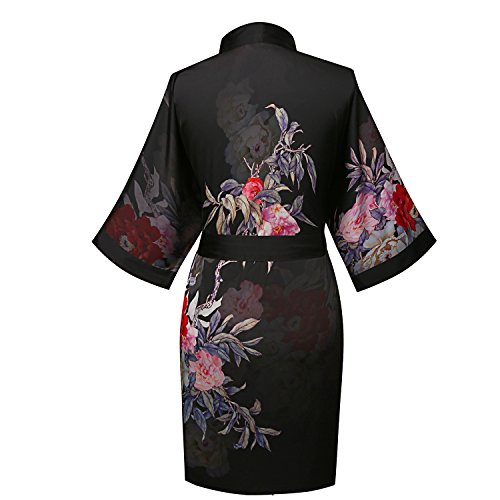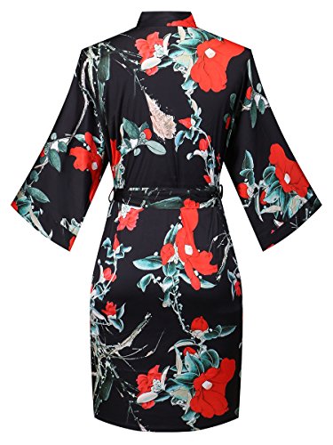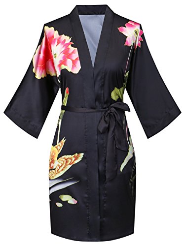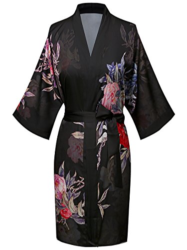 ExpressBuyNow Women's Print Kimono Short Robe - Watercolor Floral ,Black ,free size