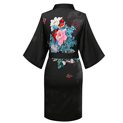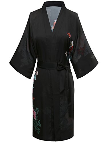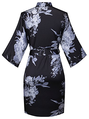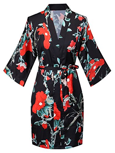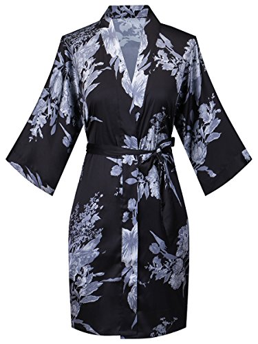 ExpressBuyNow Short Kimono Robes for Women - Watercolor Floral Floral Black