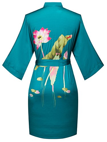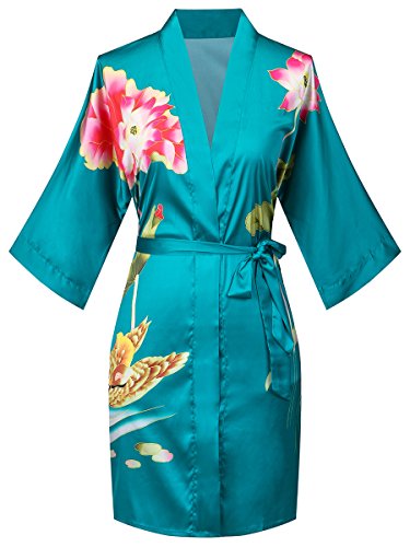 ExpressBuyNow Short Kimono Robes for Women - Watercolor Floral Turquoise