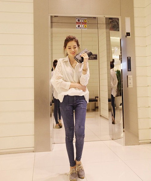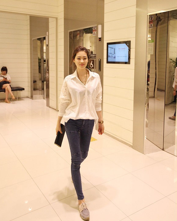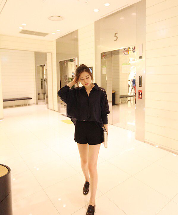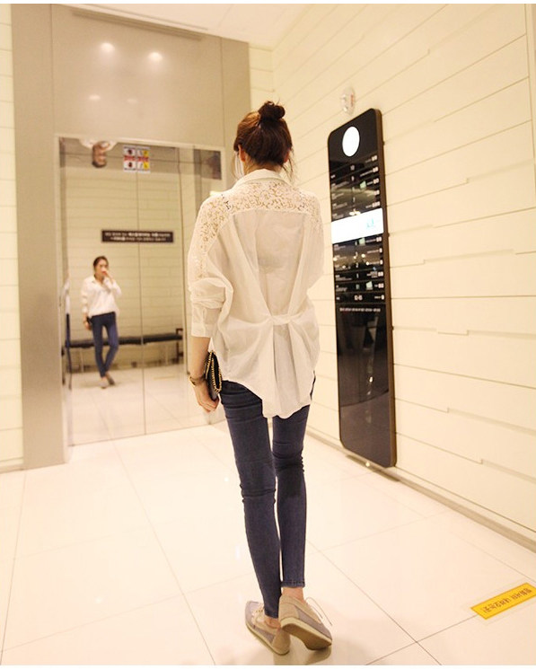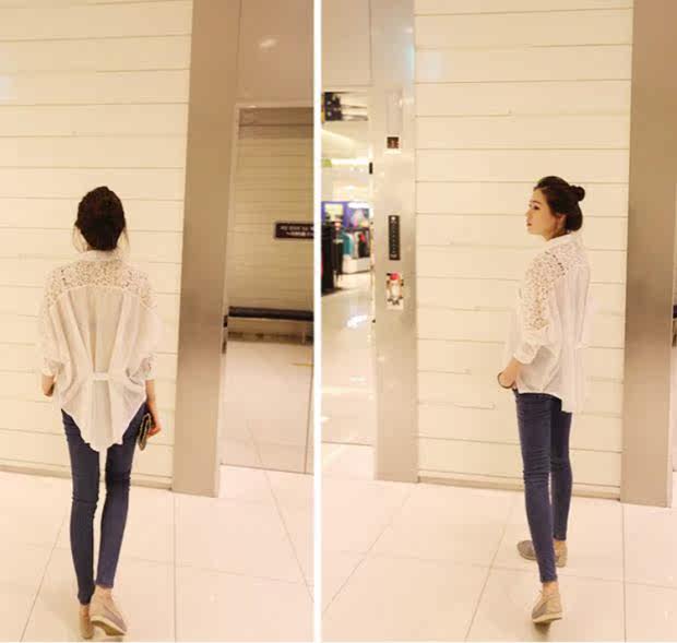 实物为七分袖,胸围两个数值,1个为后背扣起,1个为后背松开。