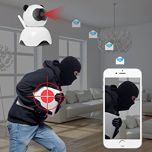 -. Feature : ✔ ONE KEY CONFIGURATION: One Key WiFi Configuration technology makes setup so quick and easy. Just plug in the power cable, download the App and set it up via your iPhone or Andriod smartphone, remote access to the wireless security camera on iPhone/ iPad/ Android phone/ PC, keep an eye on your loves and belongs anywhere anytime. / ✔ MOTION DETECTION: Motion Detection based on motion sensing technology, when the camera detected something moving before the lens, will put out a alert sound and send alert notification to your phone APP or email. / ✔NIGHT VISION AND TWO WAY AUDIO: Night vision up to 16-feet, never miss a moment, day or night, with visibility up to 16 feet in complete darkness. Communicate with family, friends and your pets on mobile devices. Talk to camera or listen to camera, there is no distance to communicate with anyone. / ✔ PAN AND TILT: Stunning Full HD 720P Video. Remarkable Field of View with Super Wide 120 degree Viewing Angle, Remote Pan/Tilt create a complete 355° coverage, 4X Intelligent Digital Zoom. Supports remote viewing & recording from anywhere on Windows PC Software, iPhone and Android mobile with installed the app. / ✔ ADVANCED VIDEO RECORDING: Record, store and review footage using a Micro SD card(Minimum support 8G, Maximum 128G), You can playback the videos on your phone. Loop recording: When the memory full, it will auto cover the oldest video files.
