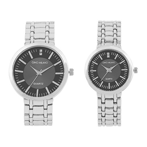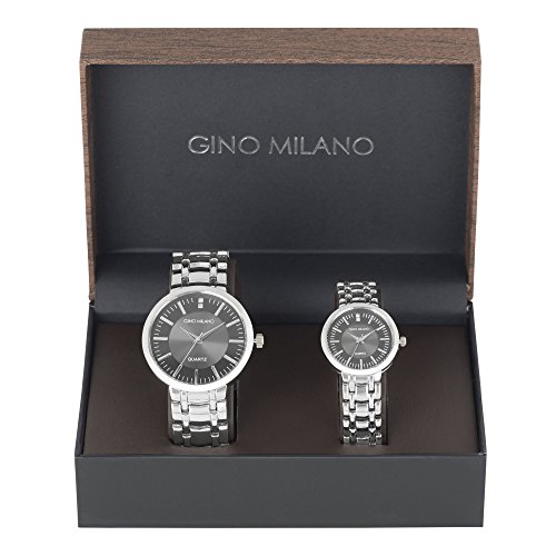 His and Her Watch Sets - 2 Piece Matching Gift Set by Gino Milano with Gift Box-Silver 8495