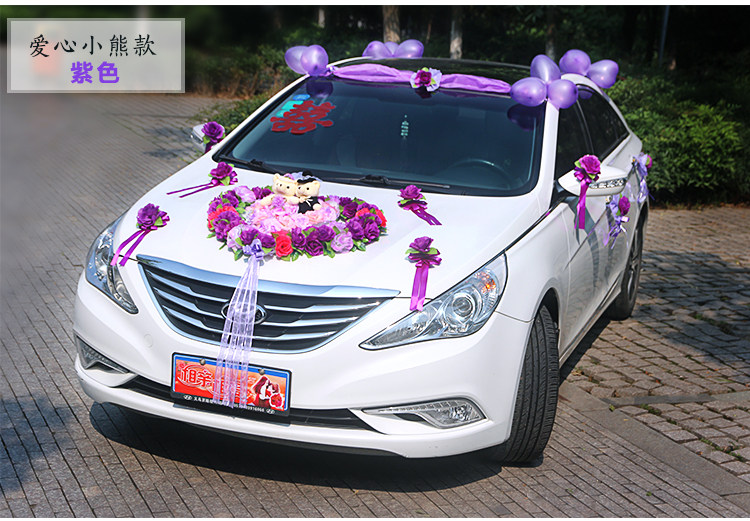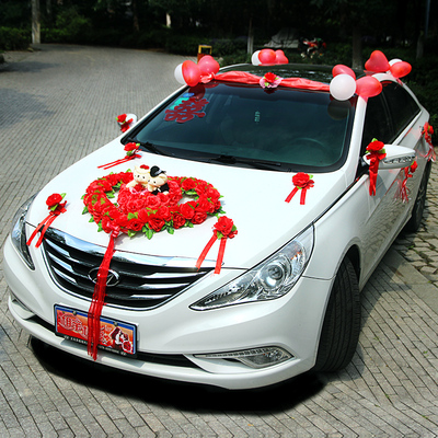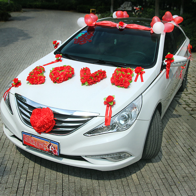 Material: yarn, cloth, light paper Dimensions: Specifications vary Set contents: The main decoration a decoration after + 1 + car handle 4 + 4 + body decoration flower decoration car brand after a heart-shaped balloon 16 + + + cute personalized car stickers Two beautifully packaged outside fixed tape + box 1