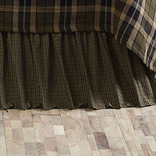 - Gathered ruffle is light and dark earth Tone greens with Creme accent plaid fabric with 16Drop
