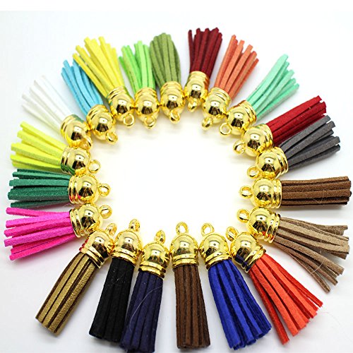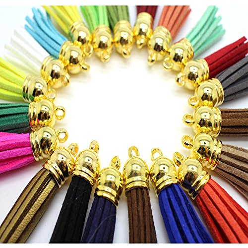 45pcs of Multi-Colors Leather Tassel with Gold Caps Cell Phone Straps/DIY Charms