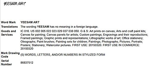 - Registered Brand: YEESAM ART. Registry done with Amazon. ~~ Paint by Numbers is a DIY craft popular in Europe, Japan and Korea. It combines many functions in one, it can be a present for others, your live entertainment and your home painting artwork. It offers all the basic painting skills, a sense of accomplishment and amusement. You can share the fun of painting with your family, lover and friends, it will be your own masterpiece for collection