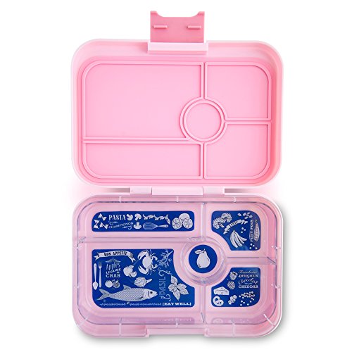 YUMBOX is leakproof! Pack wet foods like yogurt and applesauce (not water). Seals with one lid. Easy open latch. Removable tray with elegant illustrations. The 5 compartment set is also compatible with 4 compartment Tapas tray, soon to be sold separately.