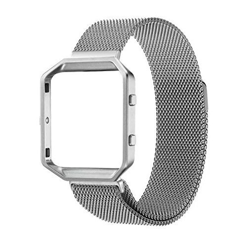 For Fitbit Blaze Band With Metal Frame, Wearlizer Milanese Loop Smart Watch Band Replacement Stainless Steel Bracelet Strap for Fitbit Blaze - Silver Small