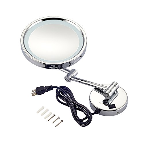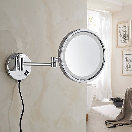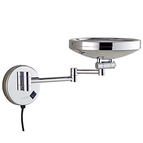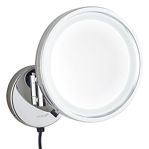 GURUN 8.5-Inch Adjustable LED Lighted Wall Mount Makeup Mirror with 5x Magnification,Chrome Finish,Plug M1807D(8.5in,5x)