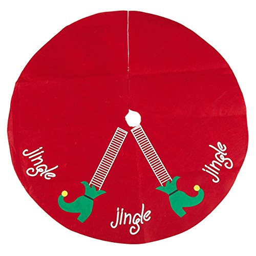 CHRISTMAS TREE SKIRT, ELF LEGS - XMAS TREE DECORATION, FELT CHRISTMAS TREE DÉCOR, RED - 30 X 0.1 X 30 INCHES