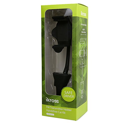 - Feature : Play songs in the car and charge your phone or mp3 player at the same time with this brand new iKross FM Transmitter Car Cigarette Mount Holder / 4-In-1 Features: FM Transmitter, Handsfree, Holder, Charger. / Frequency Range: 88.1MHz-107.9MHz. Restore the last frequency and volume when you restart the device / Support Handsfree function: voice calls out through the car audio system when using devices via 3.5mm jack cable. LED display for FM channels. / USB Output: 5V 1A. On/Off power switch. Extendable holder arm fit phone width from 58-85mm
