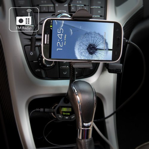- Title : iKross Black 3.5mm LED Stereo FM Radio Transmitter Car Mount Holder with USB Charging Port and Handsfree Calling for iPhone, Smartphone and MP3 Players and more