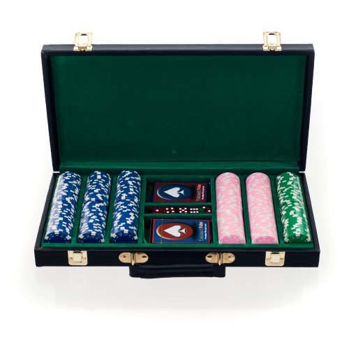Big City Casino 300 Striped Dice Poker Chip Set with Black Case, Blue/Pink/Green