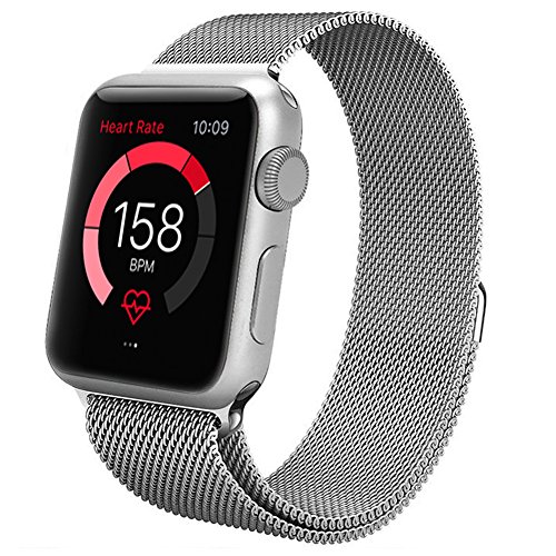 Apple Watch Band,Teslasz® 38mm Mesh Replacement Strap Stainless Steel Milanese Loop Strap Magnetic Buckle Wrist Band for Apple iWatch All Models (Black 38 MM) Material: 316 Stainless Steel Color: Silver