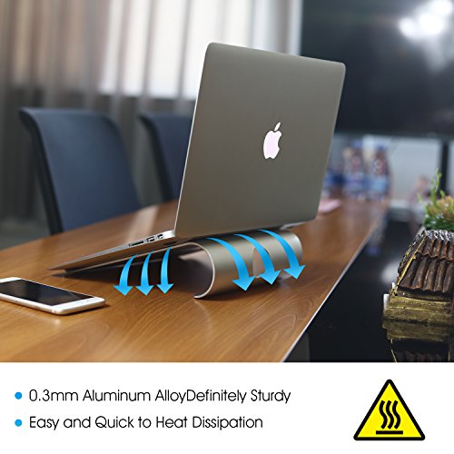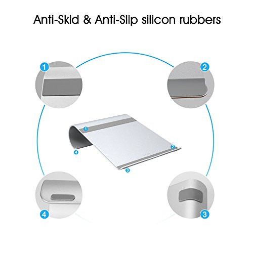 -. Feature : 1. Compatibility: Fit for laptops up to 15.4 inch. Macbook, Macbook Air, Macbook Pro all are compatible with / 2. Solid Construction: We adopt 3mm thickness aluminum, which is 3 times more sturdy than other stand you may ever used. The aluminium material is also convenient to radiate to guarantee the laptop working in order / 3. 18°Elevation Ergonomic Design: The suitable 18°elevation makes the laptop easy to use and watch, will improve work efficiency and relieve the pain of neck, shoulder and spine / 4. Anti-Slippery. Silicon pads are distributed around the stand to provide your device decent protection and hold it in place / 5. Excellence on details. Similar CNC technology as Macbook adopts, you could enjoy the comfortable sense of touch even on the edge. Premium gift for Christmas, Thanksgiving Day, Black Friday, Cyber Monday and New Year