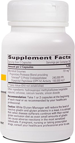 Gluten ManagerTM is a uniquely designed digestive enzyme that includes both endopeptidase and exopeptidase activity in the form of Tolerase® G and dipeptidyl-peptidase IV (also known as DPP-IV). The combination of activity causes degradation at both the ends as well and the middle of the gluten molecule.* This makes a small gluten molecule proline peptide for easier and more complete digestion.Gluten can cause negative effects on the nervous system of sensitive individuals. As gluten is a protein, it is typically broken down into small amino acids. However, Gluten is comprised of gliadin which is difficult to digest due to the long proline peptides.
