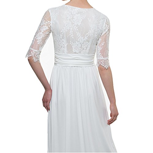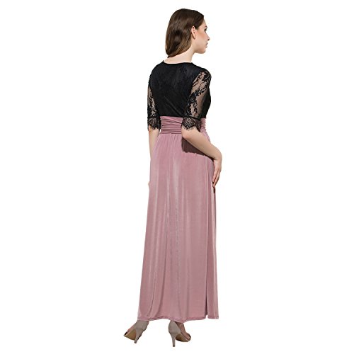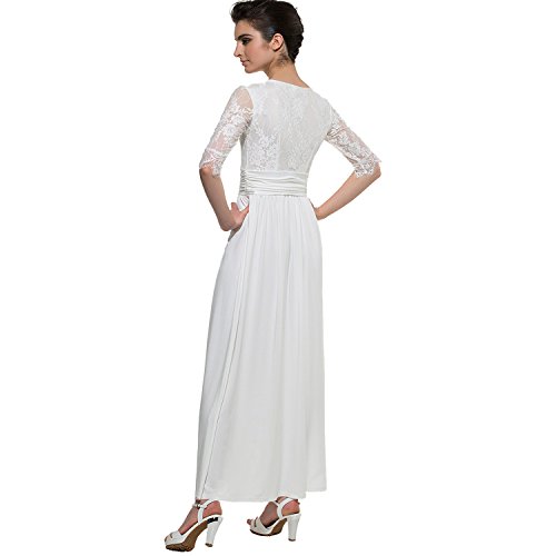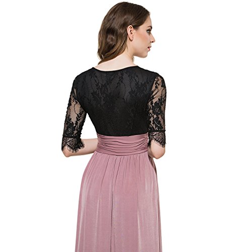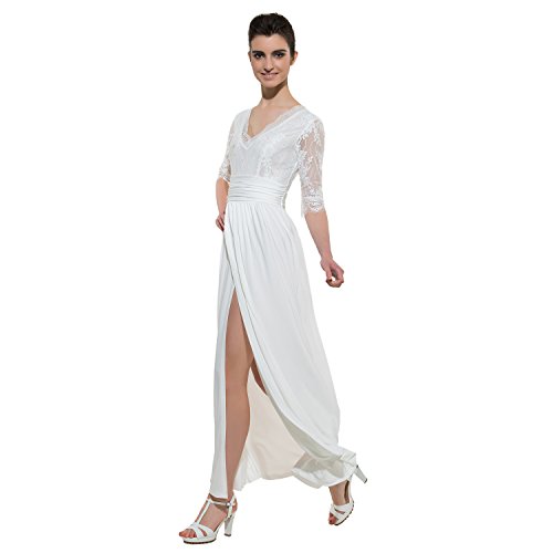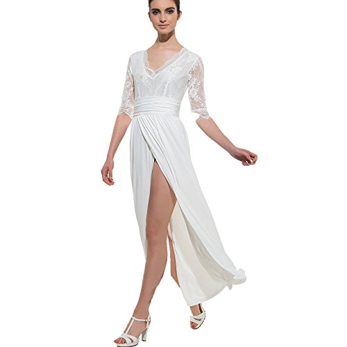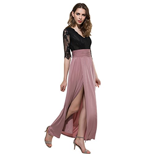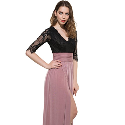 CLOCOLOR Women V-neck Half Sleeve Long Split Lace Evening Dresses Sexy High Waist Chiffon Front Party Gown