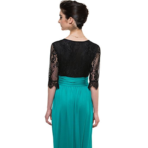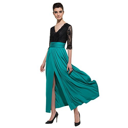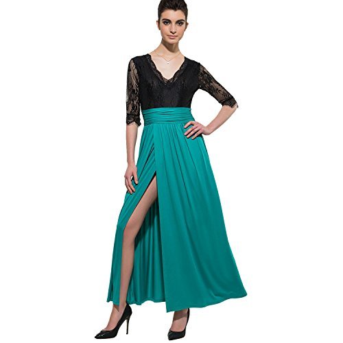 CLOCOLOR Women V-neck Half Sleeve Long Split Lace Evening Dresses Sexy High Waist Chiffon Front Party Gown,Green,XL