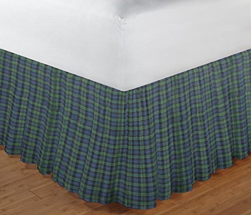 Patch Magic Dark Blue and Green Blk Watch Plaid Fabric Dust Ruffle, Twin