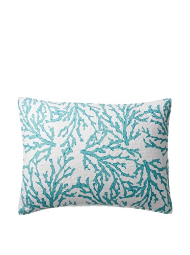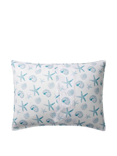 Cora Blue Pillow Sham Coral Design on One Side and Starfish and Shells on the Reverse