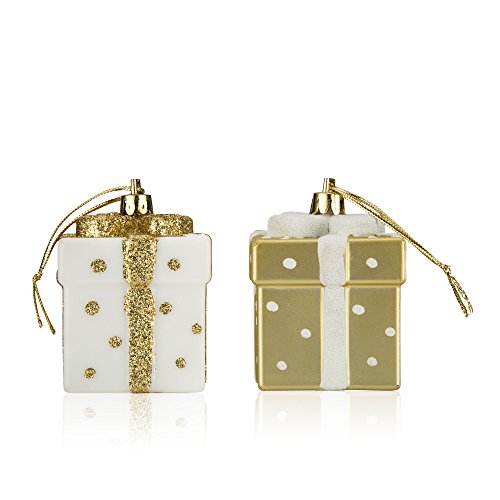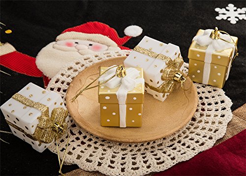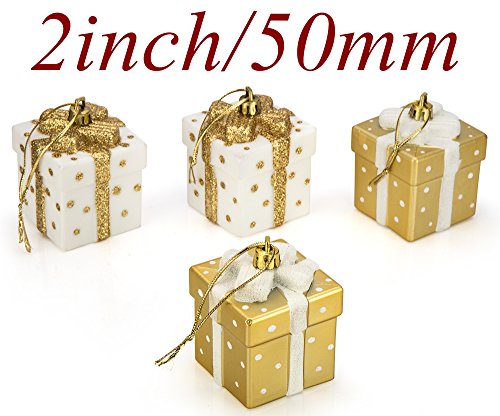 SANNO 2" Christmas Balls Ornaments,Christmas Tree Gift Box Shatterproof Decorations White/Gold Shatterproof Gift Boxes Xmas Tree Hanging Ball Ornaments for Party, Weddings, Birthdays, 4pcs/ Set,