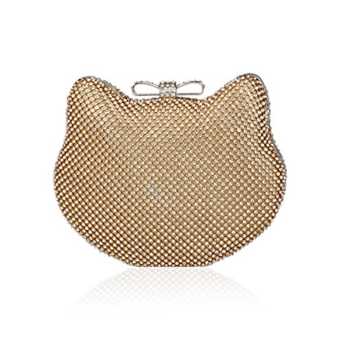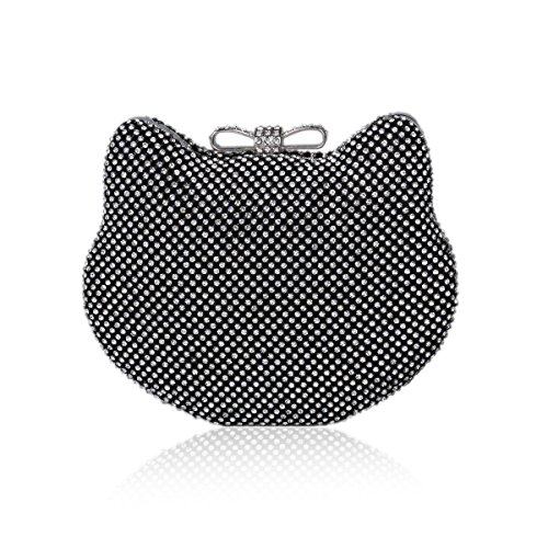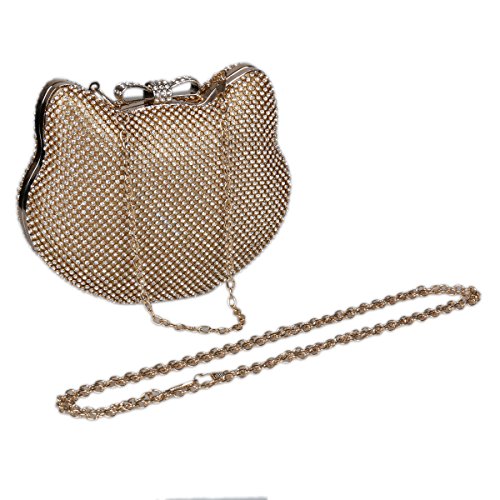 Product Description This stunning cute clutch is made of metal and it all covered shiny crystal. The special cat shape structure with a lovely bowtie on the top. It is suitable for every fashion female used in wedding party or some collective party. Credit cards, keys, money and lipsticks are all organized in the bag. 1 short hand chain and 1 long body chain are both detachable. Size: 16.5x13x5CM (6.5x5.1x2in) Hand chain: 34CM (13.4in) Body chain: 114CM (44.9in) 0