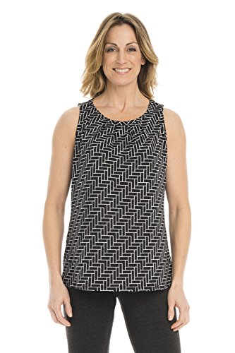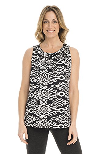 Product Description Adorable and fun tank top with a delicate pleated neckline and keyhole back. Made in a silky smooth knit fabric easily worn on its own or layered under a cardigan or jacket. Comes in solid and various prints. 0