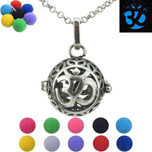 -. Feature : Main Material: Copper + Vintage silver plated / 2pcs glow in the dark beads(green & blue) + 10pcs pompoms / Close ring chain: 50cm=20" inch (extend chain:5mm=0.2" inch) / Locket size(length & width): 27mm=1.06"inch & 26mm=1.02"inch / Do not include essential oils & aromatherapy & perfume & fragrance & Scent