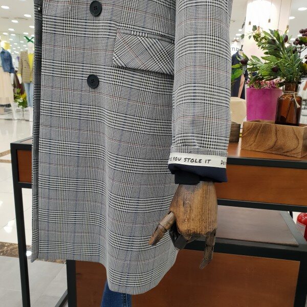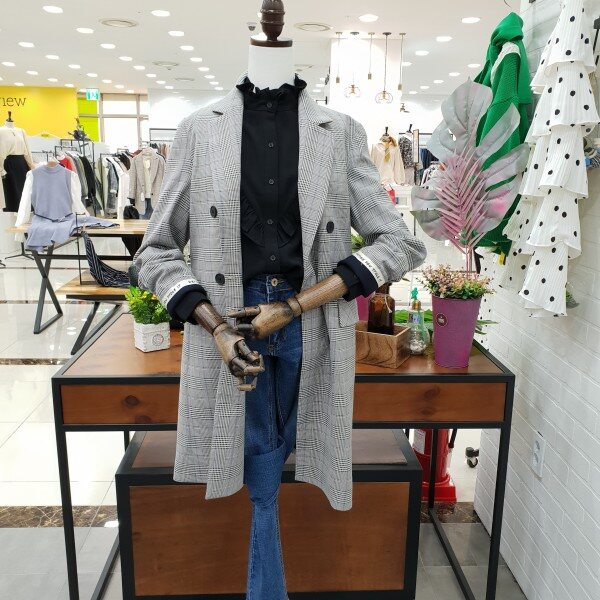 뉴욕체크 자켓이예요.소매단의 테잎이 캐주얼하면서 포인트가 되어 분위기를 한층 돋보여주는 자켓이예요.무릎 살짝위 기장감으로 너무 짧지도 길지도 않아 예쁜 라인을 연출해줘요.깔끔한 정장느낌으로 캐주얼한 느낌으로 연출하기 좋은 데일리 룩으로 좋아요.