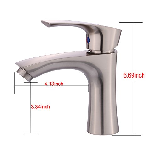 -. Brand : jinbang -. EAN : 0674551206572 -. Feature : Brushed nickel, suitable for any modern bathroom / Overall height: 6.69 inches; Nozzle height: 3.34 inches; Nozzle distance: 4.13 inches / Brushed nickel plating can resist corrosion and discoloration through daily use. Valve plate over the industry life standard, to ensure long life. / Single handle mixing faucet: easy to operate hot and cold water. / The package includes the supply of 3/8 hot and cold hoses. -. Label : jinbang -. Manufacturer : jinbang -. MPN : ST-3010 -. PartNumber : ST-3010 -. ProductGroup : Home Improvement -. ProductTypeName : PLUMBING_FIXTURE -. Publisher : jinbang -. Studio : jinbang -. Title : Modern single handle bathroom faucet, single hole drawing nickel toilet wash basin basin bathroom faucet,brass single handle faucet hot and cold faucet -. UPC : 674551206572