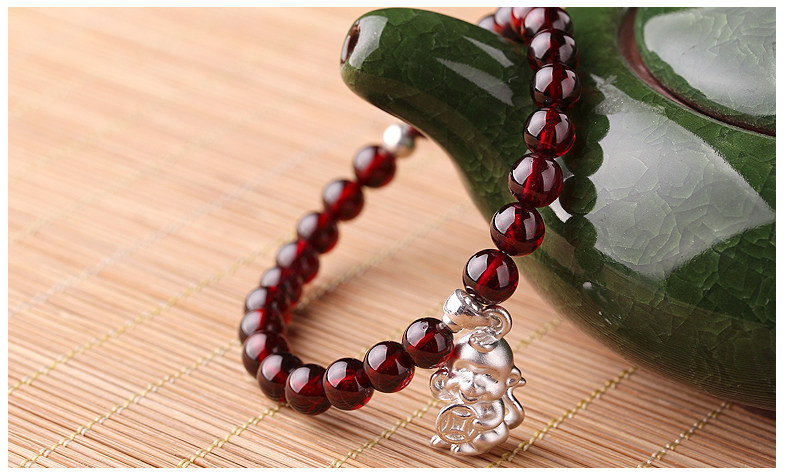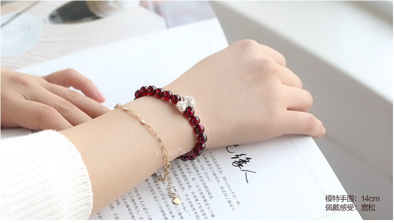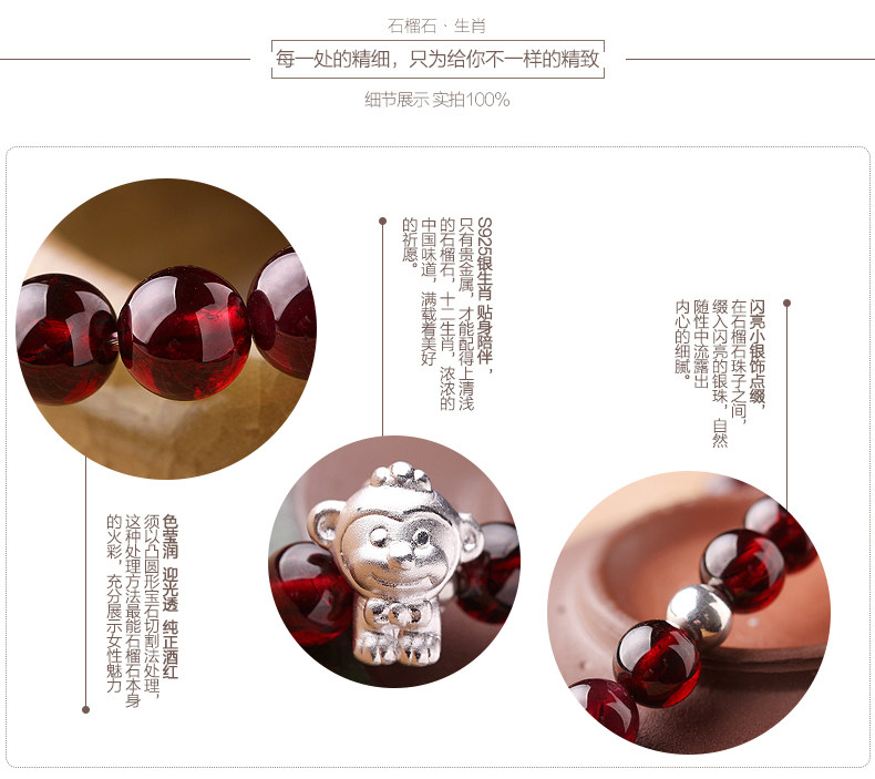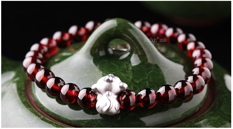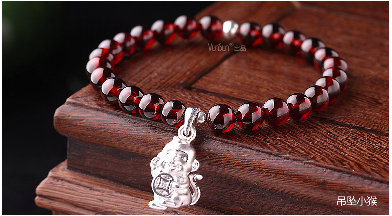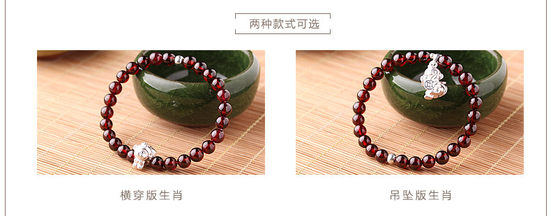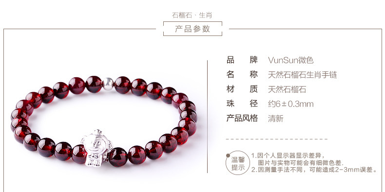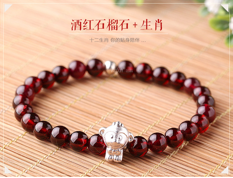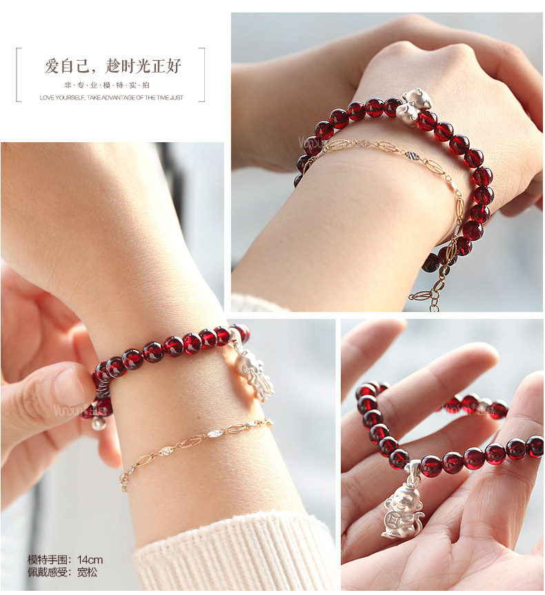 VunSun酒红石榴石手链女款 单圈简约 s925银 十二生肖 民族风饰品