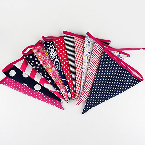 Bigger Size 12 Flags Navy Pink Fabric Banners Wedding Bunting Decor Baby Shower Garland Garden Birthday Party Decoration