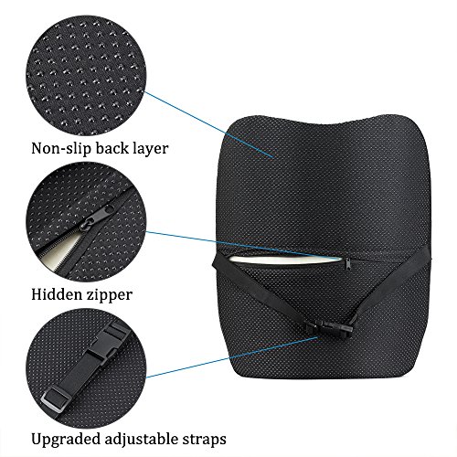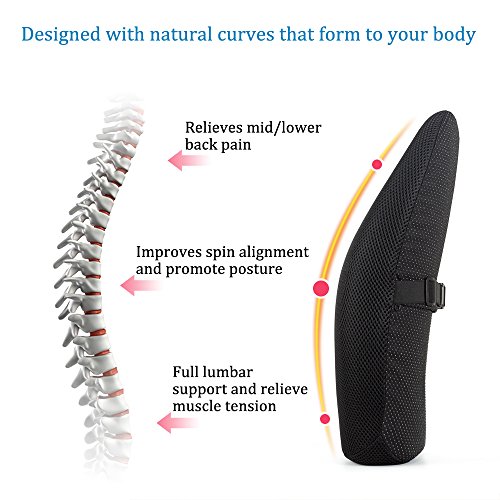 Lumbar Support Pillow for Office Chair Desk Car Seat Couch and Sofa, Ergonomic Memory Foam Cushion Relieves Lower Back Pain with Adjustable Straps