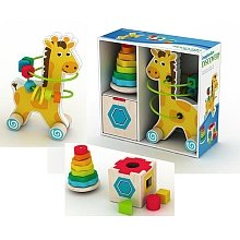The Imaginarium Classic Wooden Toy Trio combines great value with 3 classic toys packed in a giftable box! The Imaginarium Classic Wooden Toy Trio includes:- Rolling Giraffe Bead Maze with 8 fun shaped beads. Measures: 5.9''x 4.1'' x 9.84'' / 15cm x 10.5cm x 25cm- Fun sized Shape Sorter with 4 cubes for sorting & matching. Measures: 4.1'' x 4.1'' x 4.1'' / 10.5cm x 10.5cm x 10.5cm- 8 pc Stacking Ring features fun shaped rings in bright colors - flex rod for safety. Measures: 4.1'' x 5.7'' / 10.5cm x 14.5cmThe only place to find Imaginarium educational toys, play sets and more is at Toys'R'Us! Imaginarium offers classic toys for today's kids, designed for hands-on discovery and open-ended play. Imaginarium leads to learning and fun, with 6 different worlds of play. EXPRESS: All aboard, for trains, themed sets and play tables. DISCOVERY: Classic wooden toys, puzzles and building sets. PRETEND: Wooden dollhouses, play sets, dress up and play tents. CREATIONS: Express yourself with art supplies, activity kits and easels! LEARNING: Back to basics and new product formats that make learning fun! HOME: Get organized! Children's furniture with storage solutions for play spaces anywhere in the home.Be sure to visit our Toys'R'Us Exclusive Brand Store for superior toys, games and more.